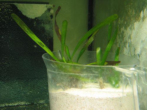 Seagrasses transplanted from the wild will generally lose their original (shipped) leaves in the ensuing weeks and months. This is very normal and is commonly observed in other aquatic plants after a change in light or water depth. In some cases, the plant appears to die back completely with no sign of life for many months. But after five months or even longer, the roots may sprout anew! Leave the rhizomes buried even after the blades have died back with hope for such recovery.